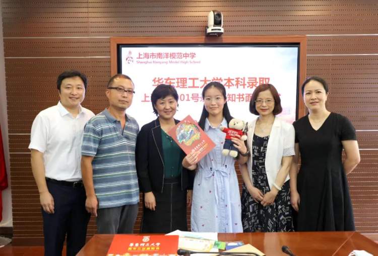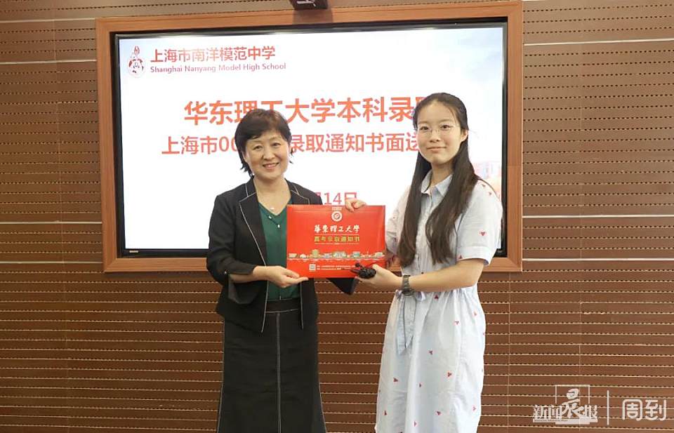 8月14日,华东理工大学副校长王慧锋亲手把华东理工大学0001号录取通知书交到了化学工程与工艺(中外合作办学)专业,毕业于上海南洋模范中学新生张雨琪的手上。