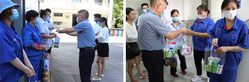 烈日炎炎下,后勤保障处一线员工一直默默坚守,为两校区的平稳运行保驾护航。8月16日上午,李涛及后勤领导班子成员、各中心主任一同对各岗位坚守工作的后勤员工进行亲切慰问,并送上防暑降温物品,表达对一线员工的深切感谢与关怀。向坚守在校园各角落的一线员工致敬,感谢他们默默建设安全美丽的校园。