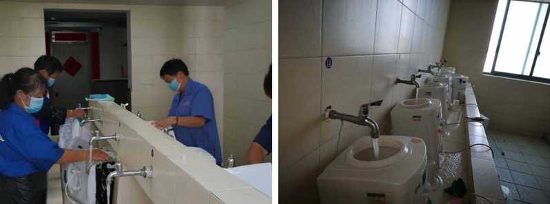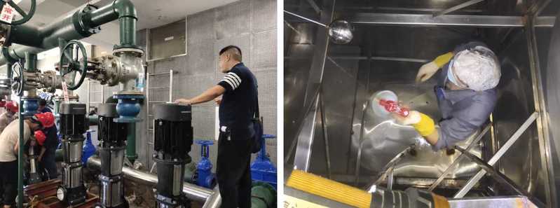 为了保证师生饮水安全,对两校区的8台水泵进行保养,对221台开水器和45个直水箱进行了清洗和消毒,对两校区的自助洗衣机、开水器等公共服务设施进行严格消毒,还维修了奉贤校区公共浴室的进水阀。