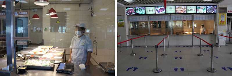 疫情以来,徐汇校区的部分食堂一直在为师生提供餐饮服务。为了迎接大批量师生的到来,两校区的食堂全部根据防疫要求进行保洁、消毒、设备检修、桌椅排布、标志张贴等开业准备工作。