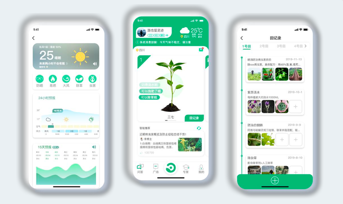 第二组学生来自西南科技大学,app作品名为《药素》,他们整个关注的视角相比文物保护更加剑走偏锋,聚焦在中药种植和售卖。这款app在构思上打通了整个中药产业,从药农的种植阶段,到售卖阶段,甚至与农业专家的知识分享,都在app中有相应板块。