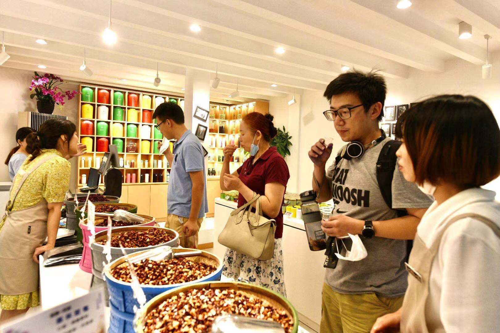 记者看到,这些老字号特色首店的店招都采用年轻人的语言体系,“三阳手作”“善道米店”“花茶潮品店”等充满时尚气息。不仅如此,这些特色首店在营销上被注入“万种风情”,邵万生结合糟醉新品、现切火腿与啤酒推出“西班牙风情”,三阳手作推出“民国风情”,老大同善道米店把米与华夏民族稻谷文化相联推出“民族风情”,黄隆泰以中国茶文化为特色推出“潮品风情”。