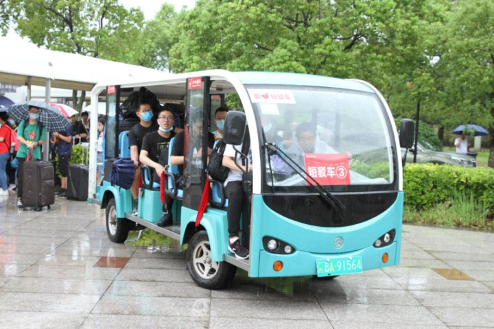 报到期间,学校每天会安排短驳车辆,打通从校门到宿舍的“最后一公里”,将搭乘学生及其行李运送至相应的围合门口。从车站接站,到进入校园、报到注册、事务办理,华理用情、用智为新生提供了一条安全有序、高效舒心的入学“快车道”。