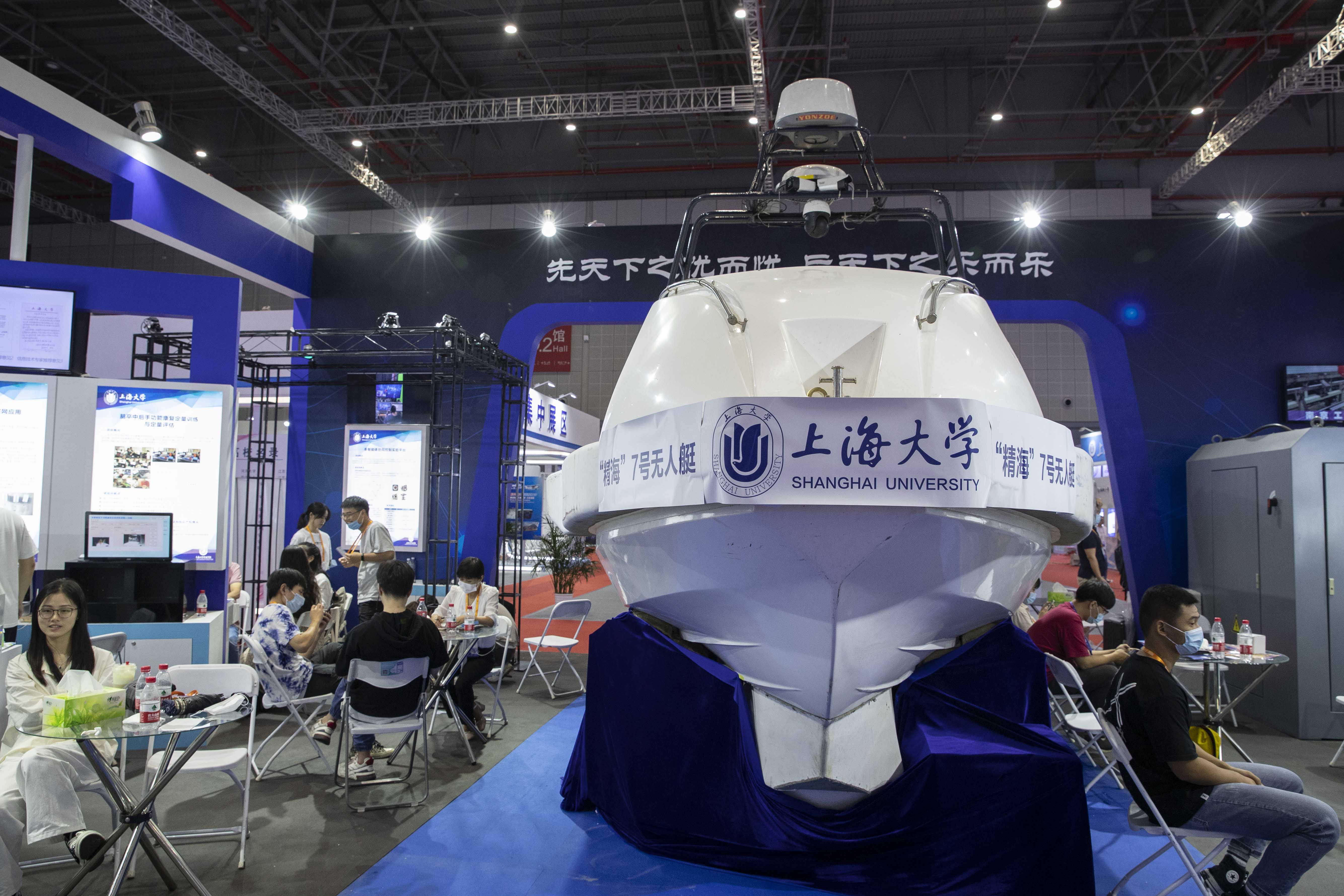 “精海”7号无人艇是这一系列无人船只的新型号,堪称今年工博会高校展区体量最大的展品,显示出“精卫填海”、舍我其谁的创新姿态。上海大学党委常委、总会计师苟燕楠介绍,上大无人艇技术集成智能制造、人工智能和机器人等多项先进技术,曾获2015年工博会创新金奖。去年上大又整合智能制造、机器人、无人艇等多个学科技术,与上海临港、上海交通大学等高校组建上海海洋高端装备功能型平台,成为上海市科创“四梁八柱”研发与转化功能性平台之一。