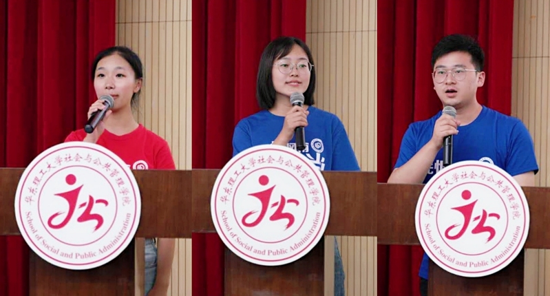 刘晓亮从本科教学管理规定、大类分流办法等方面为本科新生介绍了学院本科生培养工作,并勉励新生遵守校规校纪,明确学习目标,珍惜大学时光,努力提升专业素养。杨发祥为研究生新生介绍了学院研究生培养的相关工作,倡导大家多阅读、多思考,提升学术能力和研究能力,积极回应社会热点问题。本科生新生代表李煜桐分享了自己与华理的不解之缘,表达了对大学生活的憧憬与向往。硕士研究生新生代表展雪结合自己的支教经历分享了对社会工作专业的感悟及未来的发展目标。博士研究生新生代表瞿栋讲述了自己继续深造的原因,表达了在学术上勇攀高峰的决心和信心。