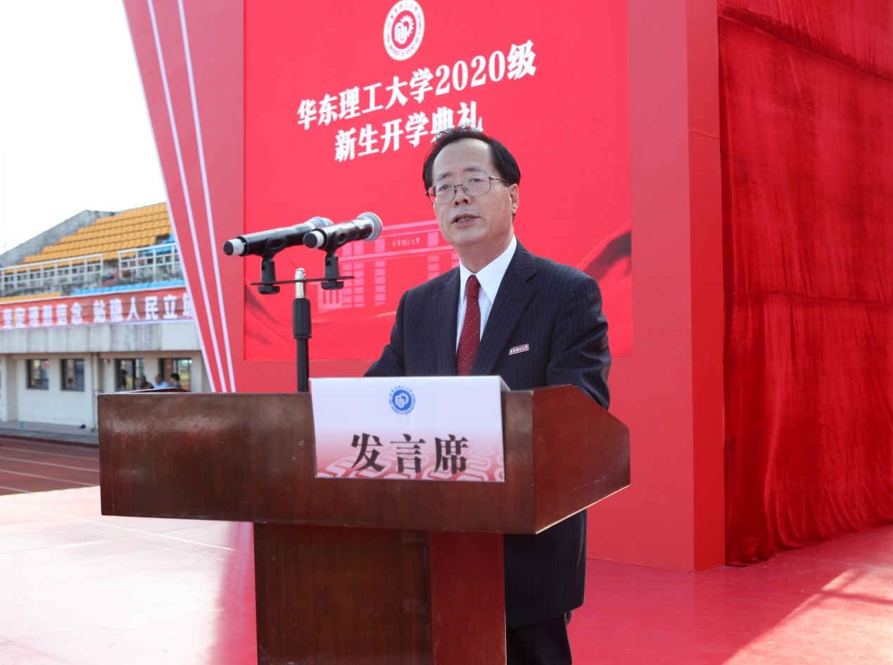 开学典礼上,华东理工大学校长曲景平以“青春奋进,担当前行”为题发表讲话。