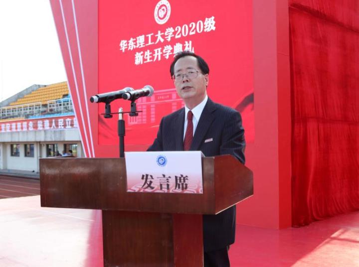 开学典礼上,华东理工大学校长曲景平以“青春奋进,担当前行”为题发表讲话,勉励新生。