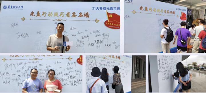 “光盘打卡”活动让节约成为华理校园的新“食”尚,越来越多的师生开始养成适量盛饭、相互督促减少浪费的好习惯。“光盘”活动一经推出,“晒”空餐盘更是在朋友圈里刷了屏,大家纷纷在“光盘行动践行者签名墙”前留言、合影。来到食堂餐具回收处,更可“观赏”到传送带上的空餐具列队缓行的炫酷场景。