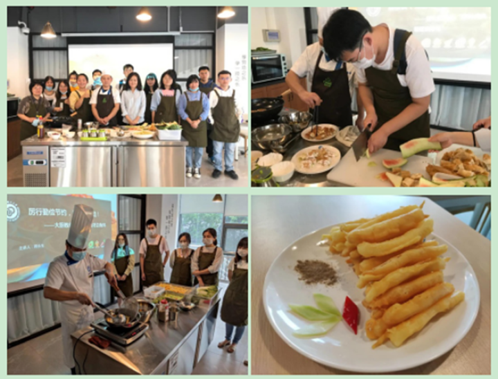 食材也要尽其用,华理还策划了“菜根谈”活动——教师生把食材边角料变成一道道色香味俱全的美味佳肴。10月10日,在一食堂二楼的劳动教育基地里,教工食堂的厨师长刘小刚给学生们上了一堂别开生面的美食公开课——用边角料烹制芹叶肉丸、糖醋素排骨,变废为宝,化腐朽为神奇!而在此前,第一期“菜根谈”活动中,大厨周长生已利用西兰花根和芹菜叶进行过现场美食制作教学。“要真正拯救那些被浪费的食物,就要用你的想象力去把它们利用起来。”华理后勤饮食服务中心裴主任表示。
