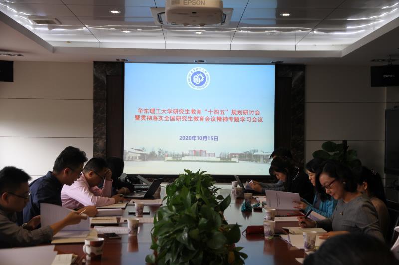 为认真贯彻落实全国研究生教育会议精神,切实做好研究生教育“十四五”规划编制工作,10月15日,由研究生院牵头组织召开了华东理工大学研究生教育“十四五”规划编制工作研讨会暨贯彻落实全国研究生教育会议精神专题学习会议。会议由研究生院院长龚学庆主持,研究生院领导班子、各二级研究生培养单位分管研究生教育工作副院长或分管学生工作副书记参加了会议。