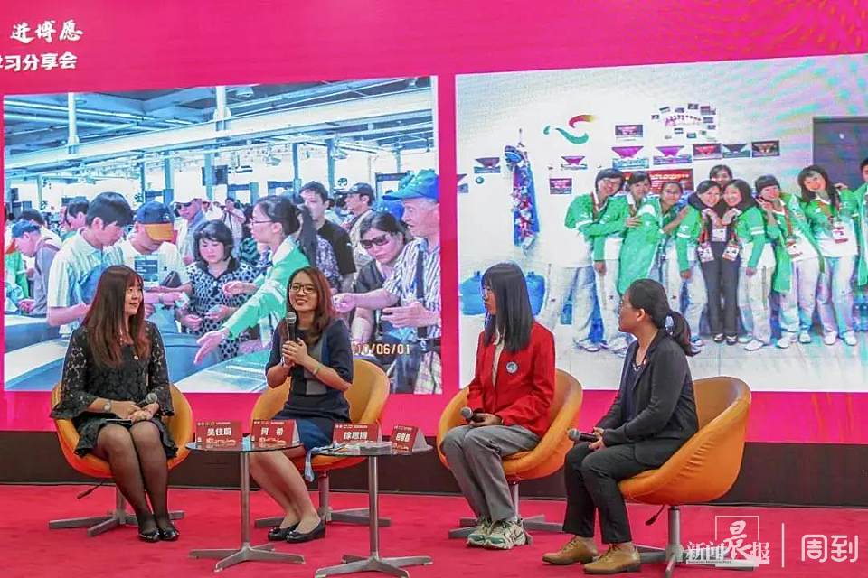 出征仪式上,10年前曾任上海世博会中国馆部志愿者常任主管、华东理工大学中德工学院副院长何希,上海世博会志愿者、华东理工大学青年志愿者协会秘书长包雷晶,2019年上海市优秀志愿者、商学院大四学生徐思博现场共话“世博志,进博愿”。