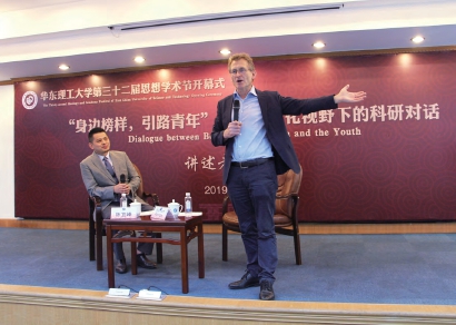 上图:伯纳德·费林加2019 年5 月在华东理工大学与青年学子开展了一场对话。