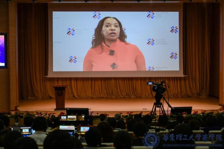 华理党委书记杜慧芳致欢迎辞。她表示,党的十九届五中全会和第三届中国国际进口博览会开幕式上习近平主席的讲话,充分彰显了中国继续深化改革开放发展的信心和决心,彰显了开放中国的强大韧性和旺盛活力。大变局下如何更好地把握国际贸易与产业发展趋势,更好地开展国际经贸合作,维护自由、稳定、公平的世界经济秩序,促进全球贸易和经济的可持续发展,是被广泛关注的重要议题。“华东理工大学始终坚守与祖国同行,与时代共进的责任担当,围绕国家需求,聚焦四个面向,建设高水平的人才队伍和开放式的研究平台,努力增强国际影响,提升办学水平。我们举办国际进口贸易论坛,正是为了立足现状,聚焦热点,探讨前沿,启迪思想,汇聚智慧,为社会经济发展贡献力量。”杜慧芳强调。