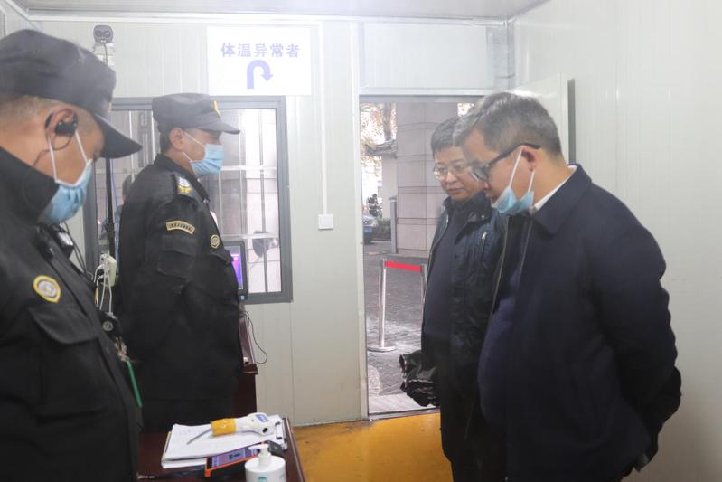 会后,胡宝国调研了徐汇校区第一食堂、学生宿舍4舍、8舍及校门口,检查食堂及宿舍防疫措施,了解进出校门管理及学校外来人员审批备案程序等。他进入后厨冷藏间了解冷链食品的防疫管理工作,强调要加强冷库人员管理,严格消毒冷库间及相关设备,加强冷冻食品追溯管理,切实保障冷冻食品的安全。对于宿舍防疫,他强调宿舍出入口防疫措施必须落实到位。