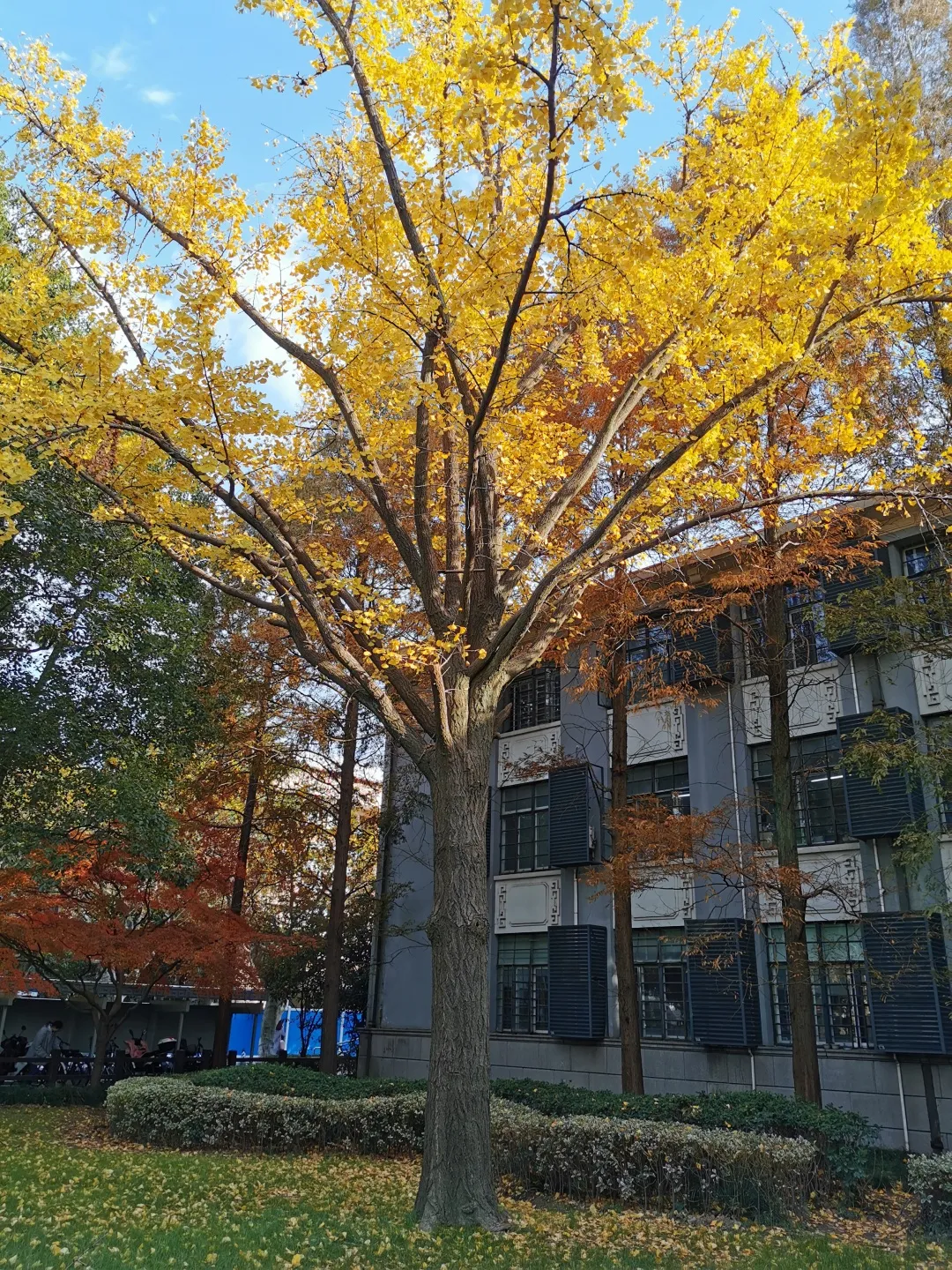 在蓝天、白云与阳光之下,金黄的银杏叶和华理的一砖一瓦、一草一木融为一体,美得别有一番韵味。找一个明媚的天气,拉上会拍照的小伙伴,一起记录下你跟华理的“黄金时代”吧!