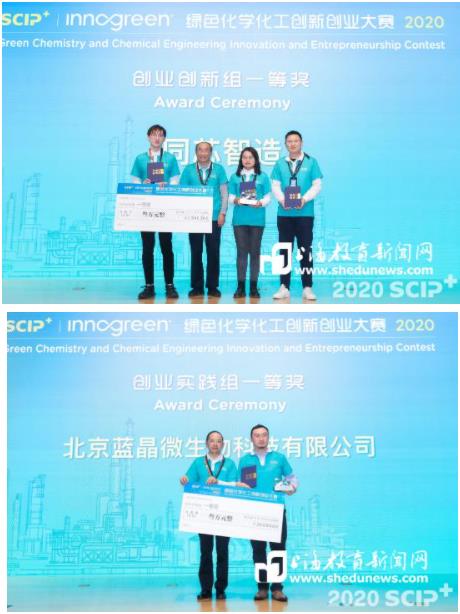 通过海选、初赛、复赛评审和线上半决赛,创业创新组的SIC陶瓷膜、南光、同芯智造等三支团队,创业实践组的北京蓝晶微生物科技有限公司、北京幸福益生高新技术有限公司、碳佳(北京)科技有限公司等三支团队晋级决赛。在经过决赛的“争金”环节后,创业创新组中,同芯智造团队凭“半导体封装用PBO光刻胶的国产化开发及绿色产业化”作品折桂;创业实践组中,北京蓝晶微生物科技有限公司团队携“生物降解塑料PHA——塑料危机的可循环解决方案”作品问鼎。其他团队分获二等奖、三等奖和优胜奖。