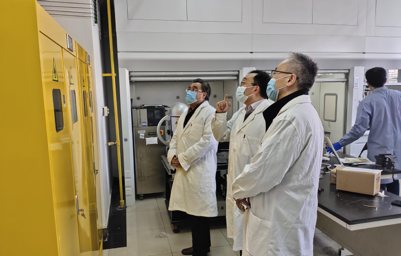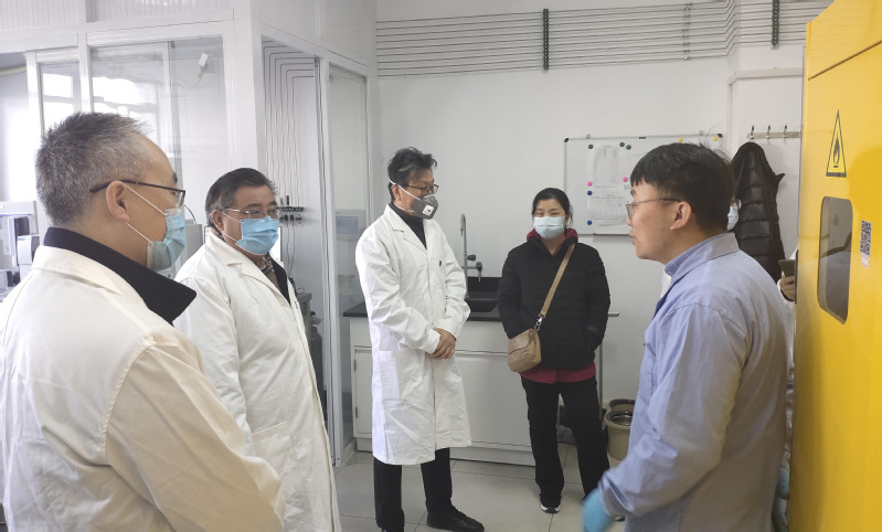 在实验室与装备处处长袁洪学,副处长、安全办主任徐宏勇的陪同下,沈志超随机检查了实验十二楼、实验十五楼、实验十六楼、实验十八楼的防疫工作情况和部分实验室的安全管理情况。沈志超与正在做实验的师生进行了深入交流,叮嘱他们切实担起实验室安全相应责任,落实好安全举措,做好药品、钢瓶、废液等危险品的保存管理和科学处置,确保实验室安全。