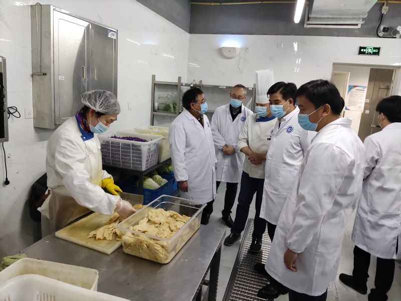 在一食堂后厨,沈志超认真听取了后勤党委书记、后勤保障处处长岳海洋,副处长龚向明关于食堂针对冷链食品所采取的疫情防控具体举措的介绍,重点查看了冷库冷链食品出入库管理和存储情况。沈志超强调,当前疫情防控形势复杂严峻,要克服麻痹思想,慎终如始落实好疫情防控各项要求,特别要把好冷链食品管理的各个关口,确保师生吃得放心,切实把疫情防控做细做实。