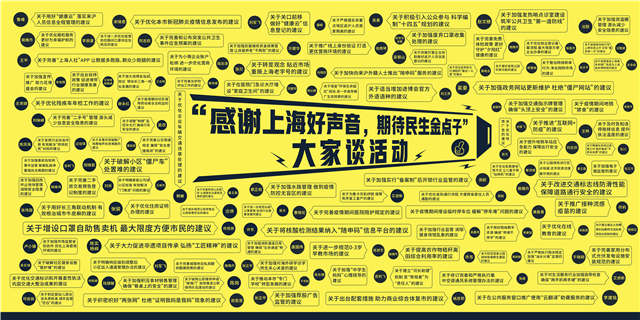 活动现场,围绕着“发展更科学”“治理更精细”等主题,市商务委、市规划资源局、市生态环境局、市绿化市容局、团市委、杨浦区人民建议征集办等单位也在现场回应了市民和建议人代表的期待,向大家展示了“金点子”落地生根、开花结果,变成城市治理的“金钥匙”的过程。