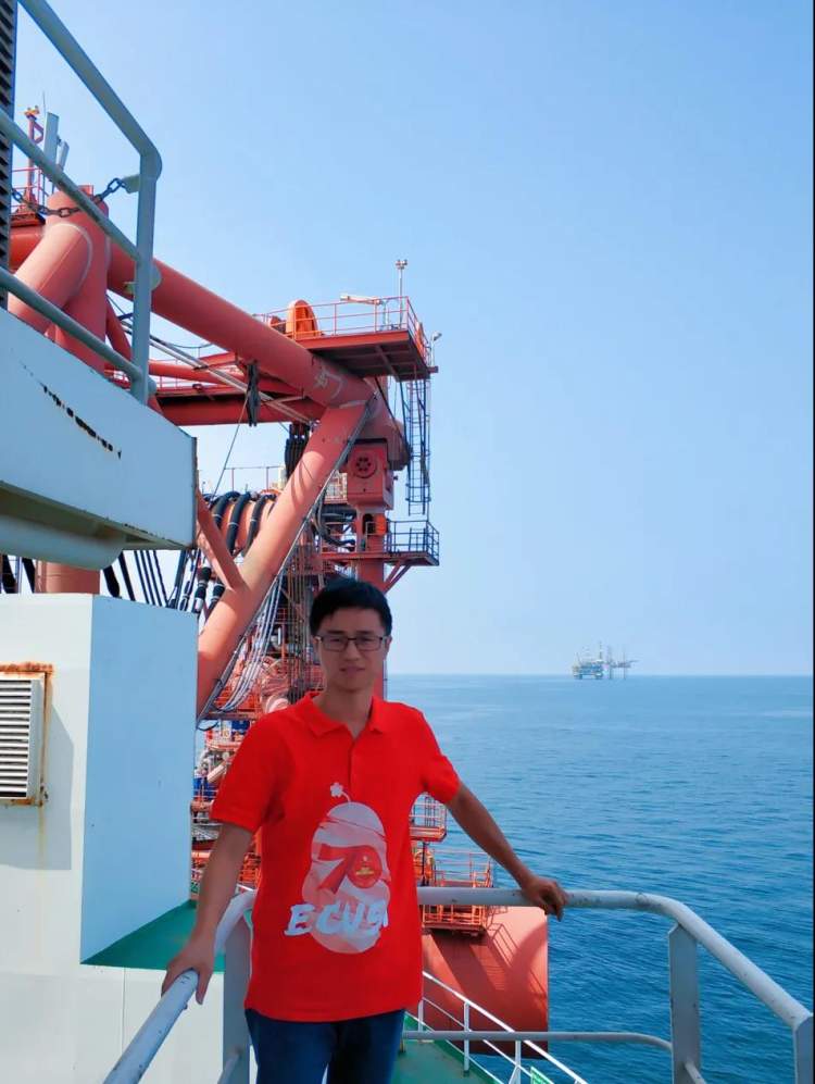 他是华东理工大学机械与动力工程学院博士研究生刘懿谦,从2017年第一次登上海洋油气田平台起,他就和海洋结下了不解之缘。