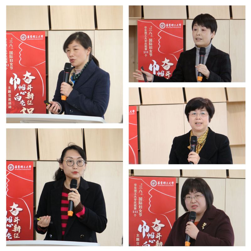 交流活动中,5位曾荣获上海市三八红旗手、上海市教育系统三八红旗手、上海市教育系统三八红旗集体的优秀女教师代表作交流发言,分享多年来在科研、教学领域潜心笃志、砥身砺行的成长成才经历。
