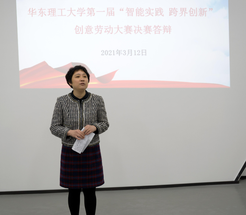上海应用技术大学教务处处长王宇红教授代表专家组作总结发言。她高度评价了同学们的独特视角和创意思维,期望同学们厚植劳动意识,积极劳动实践,将项目深入开展,用智慧与行动切实解决劳动问题。