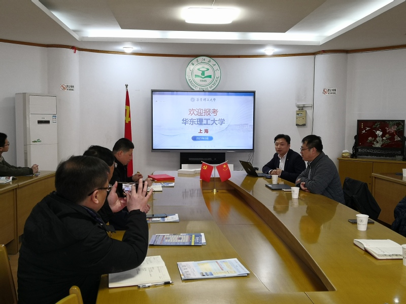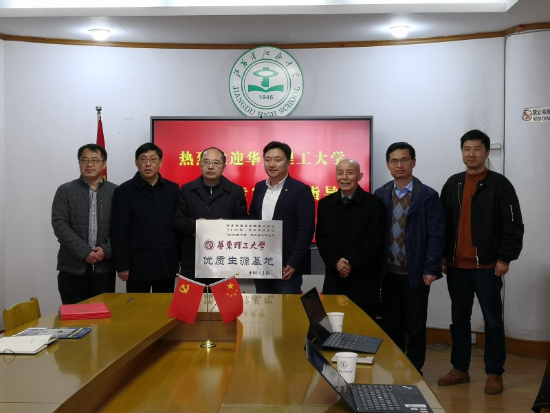 3月18日,我校一行赴江都中学举行优质生源基地授牌仪式,并为江都中学送去华东理工大学喜报。吴辉为江都中学的师生代表介绍了我校的办学特色、学科优势、人文精神、科研成果、师资队伍、校园环境及招生政策等,鼓励同学们报考华理,并与在场学子进行了深入交流。周明龙对华东理工大学一行的到来表示感谢,并表示,华理“优质生源基地”在江都中学挂牌,既是荣誉,也是责任。近三年江都中学累积为华东理工大学输送11名优秀学生,他希望以此为契机,与华理精诚合作,共谋发展,为高校输送更多优秀人才。期间,修光利与区教育局副局长兼职教中心校长陈涛就如何提升当地环保企业技术人员的素质进行了交流沟通。