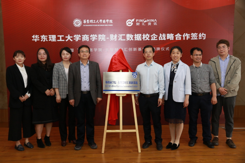 在与会人员的见证下,吴玉鸣和冯卫强代表校企双方签署了战略合作协议,并共同为“华理商学院-大智慧财汇创新基地”揭牌。根据协议,双方将并肩建设创新基地,打造“产、学、研、用”深度合作的科研团队,在金融大数据与产学研教学领域展开深入合作,实现校企合作共赢。