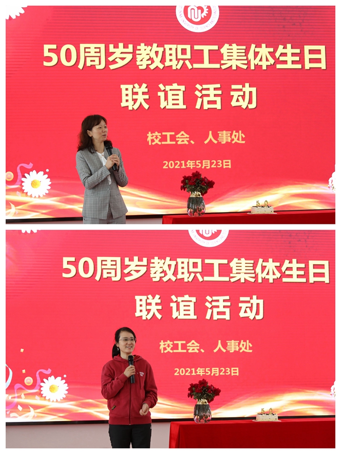 50周岁教职工集体生日联谊活动是校工会、人事处组织开展的传统特色活动,旨在让老师们通过该活动增进交流和沟通,感受学校温暖,共享生日快乐。校工会将以此活动为契机,在中国共产党建党一百周年之际,创新活动形式,丰富活动内容,提高活动质量,凝心聚力,共创华理美好未来。