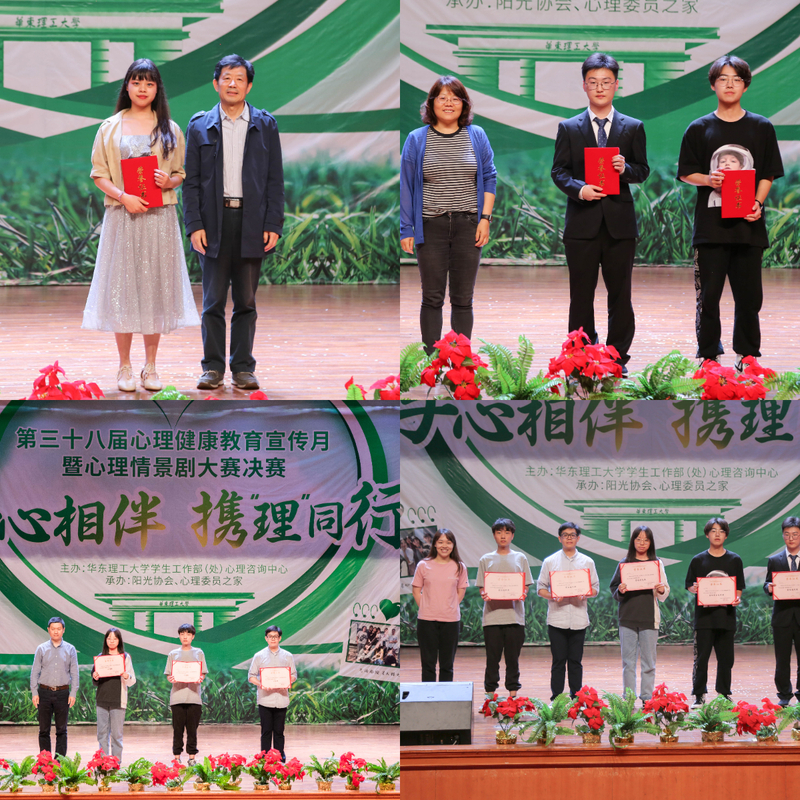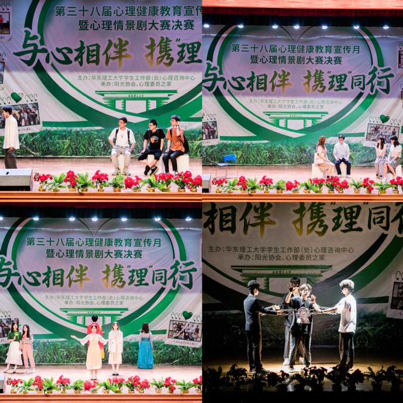 5月19日下午,华东理工大学第三十八届心理健康教育宣传月暨心理情景剧大赛决赛,在奉贤校区大学生活动中心剧场举行。上海高校心理咨询协会会长、同济大学陈增堂,我校校长办公室副主任王海明、党委宣传部副部长房树芬、党委学生工作部副部长郑东、校团委艺术教育中心指导教师孙璐以及心理咨询中心副主任李永慧、专职咨询师周冠华等老师出席并担任大赛评委。各学院党委副书记、兼职心理辅导员、各年级辅导员、学生观赛团也参加了此次活动。