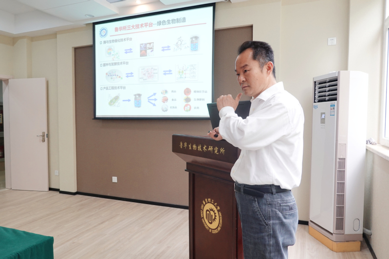魏东芝展示了20年前鲁华所成立时的珍贵录像,并代表鲁华所全体师生对鲁南制药集团的鼎力投入与华东理工大学的倾力支持表示诚挚的感谢,也对长期以来关心和支持鲁华所建设和发展的各位领导、各界人士致以由衷的谢意。20年来,“鲁华人”栉风沐雨、耕耘不辍,5次主持国家重大专项和重点研发计划,完成技术转让或企业委托项目80余项,始终坚持把论文写在祖国大地上。迄今,建立了酶与生物催化技术、细胞工厂与发酵技术、产品工程技术三大平台,从常规项目研发顺利转型为面向绿色生物制造的技术与产品“定制”,未来发展潜力巨大。其中,创建了容量达4000种酶的酶库,产业化及储备产品近500个,培养了研究生500余人,已荣获国家技术发明二等奖和省部级一等奖5项。他表示,鲁华所将继续砥砺前行,服务国家战略,不负鲁南制药集团和华东理工大学的支持和期望。