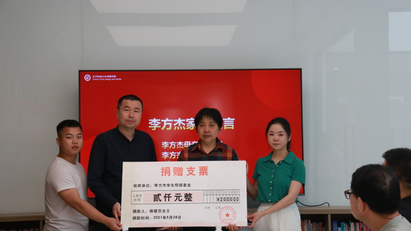 5月28日下午,艺术设计与传媒学院“李方杰学生帮困基金”启动仪式在晨园110会议室举行。校友与发展联络处处长李建伟,艺术学院党委书记赵菡、院长丁伟,李方杰母亲麻碧芬、李方杰姐姐李芳菲,德必集团党委书记苏荣,艺术学院校友理事会代表何海荣,教师代表周洁、学生代表蔡骏等出席了本次启动仪式。启动仪式由艺术学院党委副书记王珊主持。