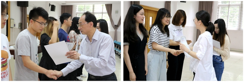 图片说明:李建伟、王芝眉为班级联络代表颁发聘书