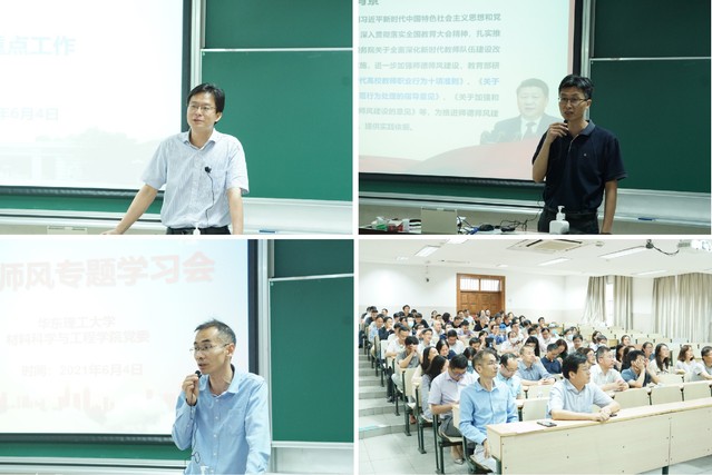 为全面贯彻习近平总书记关于教育的重要论述和全国教育大会精神,深入学习师德师风建设系列文件精神,进一步加强师德师风建设,6月4日,材料学院在徐汇校区召开2021年师德师风专题学习会。学院党政班子成员、全体教师参加会议,会议由副院长顾金楼主持。