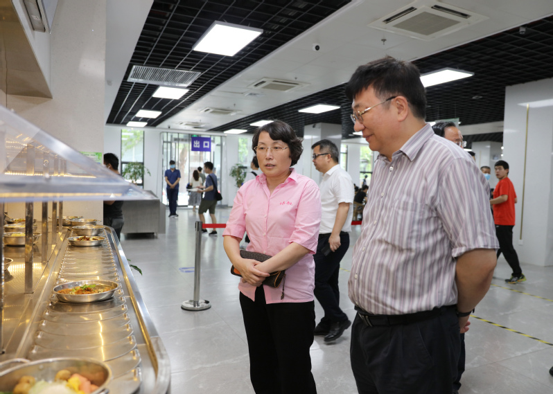 督察组成员上海市教委学校后勤保卫处处长张旭、调研员陈宇红、主任施丽君,东华大学原后勤集团总支书记、副总经理沈建平,上海交通大学化工学院原副院长彭宗林共同参与督察。