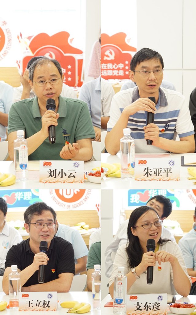 老中青三代党员教师代表围绕“回首悟初心” “奋进新时代” “使命再出发”主题,回顾了党成立100周年波澜壮阔的光辉历程,畅谈自己的“入党初心”,讲述自己的奋斗故事,共话爱党情怀。荣获“光荣在党50年”纪念章教师代表吴平平、王俊深情地回忆年轻时听党话、跟党走,在党的关怀和教育下走向科学报国路的经历。“我是1990年从中国科学技术大学调入我校材料学院,当时大学条件比较差,但全校师生在党的领导下又红又专,怀揣着坚定的信仰。我踏实工作,严格指导学生,努力把党旗插在科学的顶峰。”回忆起在校工作的激情往事、指导学生的有趣故事,吴平平仍记忆犹新。“通信卫星远地点发动机采用先进复合材料制造,没有半点儿经验可以借鉴,难度极大。我们勇于实践,不怕失败,终于将我国第一台远地点发动机保驾护航送上蓝天。”说起自己扎根航天科技,奋力拼搏三十年的点点滴滴,王俊激动不已。“工作以来,我也陷入过迷茫低谷,课题组党员教师在我最困难的时候,无私地帮助我,让我能一路坚持下来。”刘小云对身边党员对自己的帮助无限感激。“工作以来最大的荣幸是,始终在我的周围有一批老党员在提携、帮助、指导我,他们教育我从事军工科研一定要耐得住寂寞,一定要有为党和国家服务的态度。一个技术的突破可能需要十年,一定要在这个过程中坚守自己的初心。”中年教师代表朱亚平坚定地说。“作为青年老师一定要提高自己的业务和基础知识,实现为党育人、为国育才的目标,这才是一个好老师的标准。”青年党员教师王立权在发言中提到。“我感受到祖国发生了翻天覆地的变化,给我们提供了很好的学习工作条件。作为一名实验中心的党员教师,我觉得坚守党员初心就是要不断学习,提升本领,更好地为学院师生服务。”青年教师党员支东彦对沐浴在党的光辉下成长,充满感恩。
