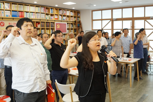 交流分享后,全体教师在袁媛的领誓下重温了入党誓词,铭记自己永远的政治身份。
