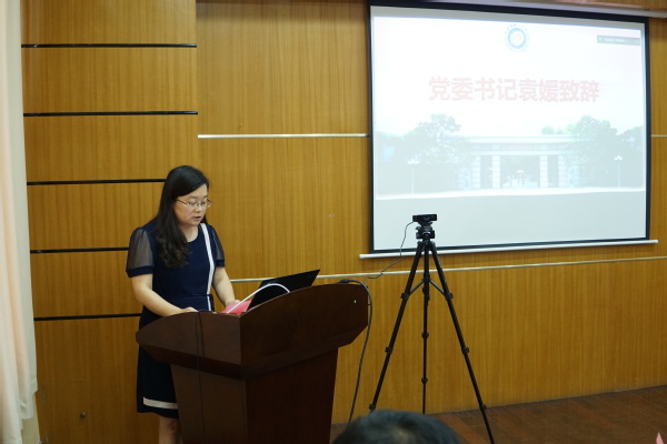 图片说明:材料学院党委书记袁媛致辞