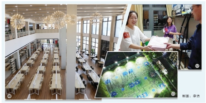 “在食堂吃出了图书馆的感觉。”华东师范大学夏雨厅食堂的改造升级,让学生们眼前一亮,更令新生发出了“华东吃饭大学名不虚传”的感叹。落地窗外正对着蜿蜒穿过校园的小河,拥有独家“湖景”的食堂,在一楼、二楼远离售餐台、座位使用率不高的区域设置了休闲区,在就餐时间外为师生提供交流、学习、研讨的好去处。