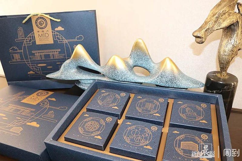 外包装继续沿用金丝蓝底的整体设计风格,搭配华理元素和中秋意象,看起来既别致典雅,又沉稳大气。