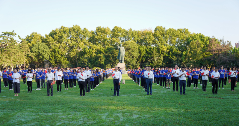 活动尾声,全体师生挥动手中的旗帜,深情合唱《我和我的祖国》《没有共产党就没有新中国》,共同为伟大祖国献上生日祝福,嘹亮的歌声回荡在整个校园,表达了全体华理师生在新征程中坚守初心,勇担使命,为建设党和国家的伟大事业贡献华理力量的坚定决心与信心。