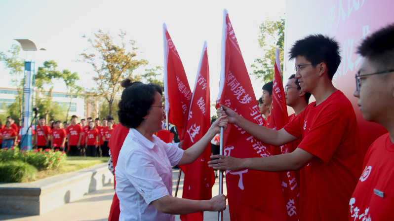 今年是中国共产党成立100周年,学校将党史学习教育与校本文化教育相结合,选取了8个校园地标建筑,开展校园红色文化打卡活动,杜慧芳为活动代表队伍授旗。学生们将在国庆假期通过歌舞快闪、朗诵演讲、科技展示、手绘书画等形式开展庆祝活动。