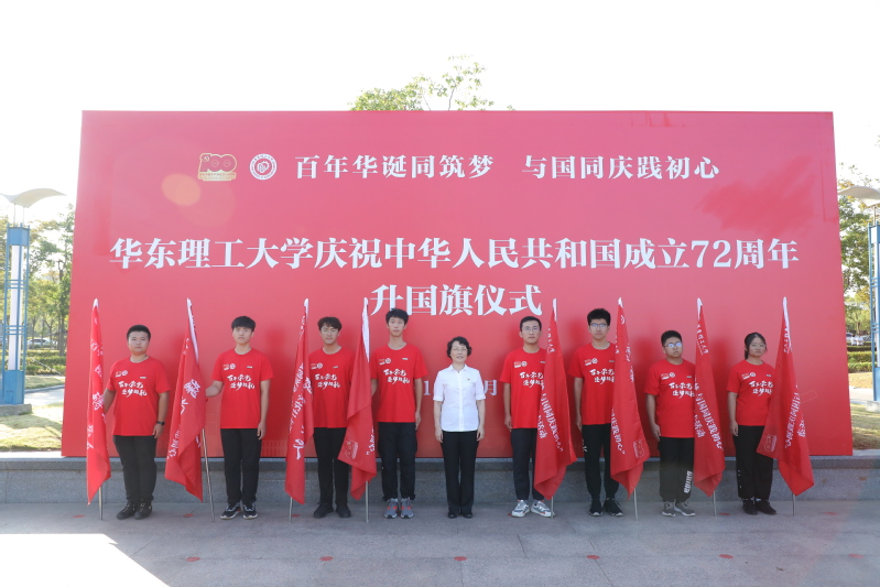 10月1日上午,华东理工大学“百年华诞同筑梦 与国同庆践初心”庆祝中华人民共和国成立72周年升国旗仪式同时在奉贤校区和徐汇校区举行。校党委书记杜慧芳,校党委副书记陈麒,相关职能部处和各学院负责人,以及700余名师生代表共同参加了本次活动。伴着雄壮国歌,迎着旭日朝升,五星红旗冉冉升起,在场师生向国旗行注目礼,表达对祖国的无限热爱和崇高敬意。