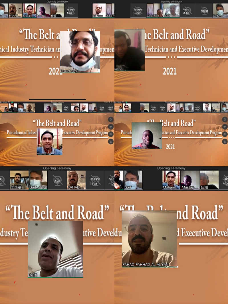 日前,我校2021年“一带一路”沿线国家石化技术管理人才高级研修班顺利开班。来自巴基斯坦、沙特阿拉伯、蒙古、哈萨克斯坦、孟加拉、尼泊尔、也门、斯里兰卡等国家的32名学员参加了本次线上培训。国际教育学院招生与教务办公室主任周海波出席开班仪式并致辞。