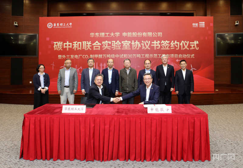 由华东理工大学与申能股份有限公司联合共建的“华东理工大学-申能股份有限公司碳中和联合实验室”签约仪式暨外三发电CO2制甲醇万吨级中试和30万吨工程示范工艺包项目启动仪式日前在申能能源中心举行。