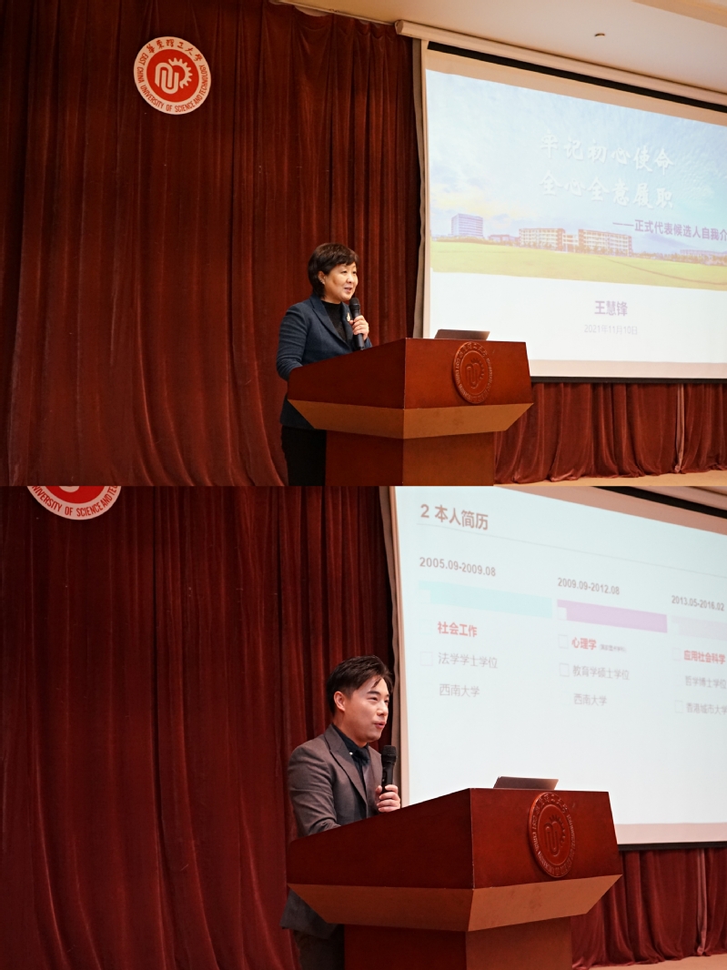 在选民提问环节,各位正式代表候选人对优化校园环境、依法治校、人才培养、实验室安全等选民关心的问题一一作答,诚恳真挚的发言赢得了现场选民热烈的掌声。