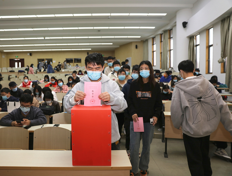今天对于我来说是个重要的日子!作为一个成年人,我人生中第一次参与到人大换届选举中,既感到兴奋,又觉得使命光荣。从这次选举中,我也感受到了学校对我们民主权利的充分尊重,从酝酿人大代表候选人到与人大代表候选人面对面,每一个环节都使我们对这次选举有了更多的责任感和使命感。特别是在疫情防控常态化的情况下,填写健康承诺书、全员戴口罩、进门做好消毒等,都充分体现了学校对我们健康安全的保障。高效有序的选举过程,也使我看到了学校各级各部门的执行力、整合力和组织力。