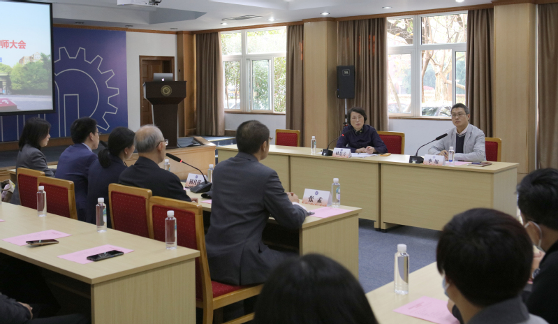 11月19日下午,物理学院召开干部教师大会,宣布学校党委关于物理学院第一届党政领导班子的任命决定。校党委书记杜慧芳出席会议并讲话,物理学院领导班子成员、系所中心负责人、教师党支部书记和教师代表等参加会议。会议由党委组织部副部长李旭主持。