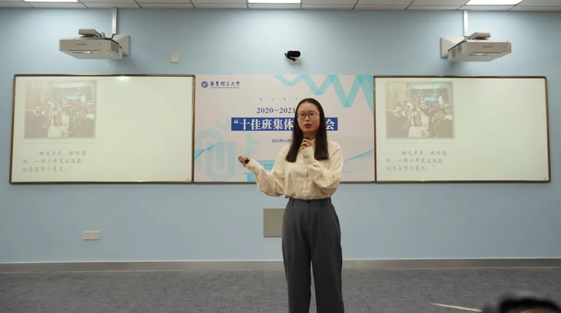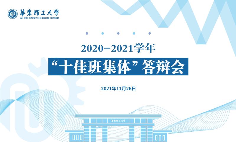 “十佳班集体”作为我校本科班级建设方面的最高集体荣誉,自11月启动评选以来,各学院共推荐20个候选班级参加答辩。答辩会上,各候选班级根据《华东理工大学关于进一步加强本科生班级建设实施意见》精神和七维建设指标体系,充分结合专业和班级特色,或慷慨激昂、或风趣幽默、或生动记叙,精彩回顾了各班级在班团干部队伍建设、制度建设、学风建设、文化建设、信息化建设、朋辈互助机制和特色工作等方面的做法与成效,以及班级在庆祝中国共产党成立100周年活动和疫情防控管理方面的表现。充分展示了新时代华理人团结互助、拼搏创新的优良班级文化。