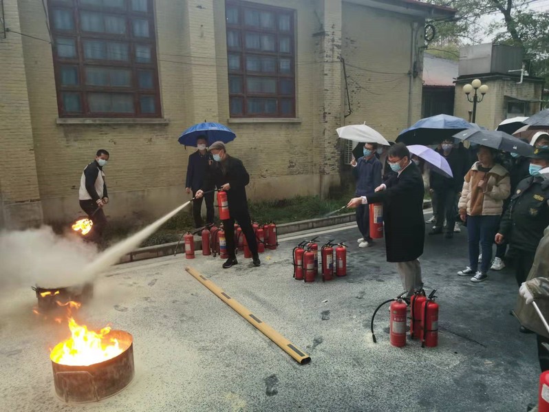 段凯洋就树立消防责任意识、清除消防安全隐患、初期火灾扑救、消防安全器材的使用、火灾应急疏散常识等进行了全面演讲,并结合灭火器使用的“提拔握压”四字口诀,为大家示范了干粉灭火器和二氧化碳灭火器的使用要领。于建国教授强调了学习消防安全知识的重要性,指出指导教师和研究生要时刻将安全意识融入学习、生活、科研工作中,方能防范于未“燃”,并与学生一起参加灭火器的实战演练。